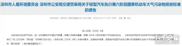 10月17日,深圳市人居环境委员会、深圳市人居环境委员会联合发布了《关于轻型汽车执行第六阶段国家机动车大气污染物排放标准》的通告。
