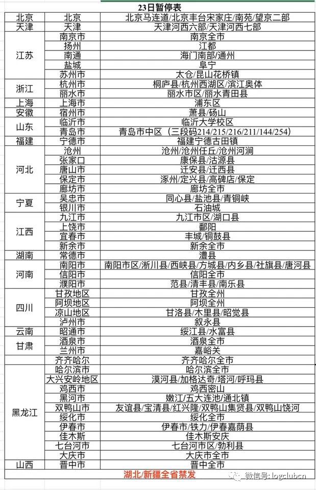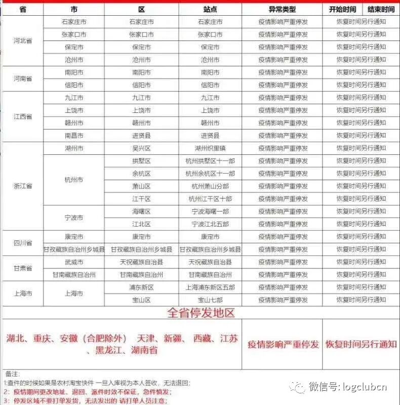(某一线快递公司网点暂停表)