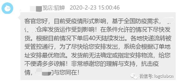 “仓库刚复工人员比较少,快递和仓库积压包裹量比较大,发货慢,具体时间无法保证。”“包裹已出库,但因为爆仓的原因迟迟没有更新物流信息,到达下一个中转站的时候才会更新。”近期网上购物的人很多会收到类似的回复,以及“急用慎拍”的提醒,有的店铺甚至要下单后40天才能陆续发出。客服也会解释,“时效不保,不能催件,网点什么时候派送就派送”。